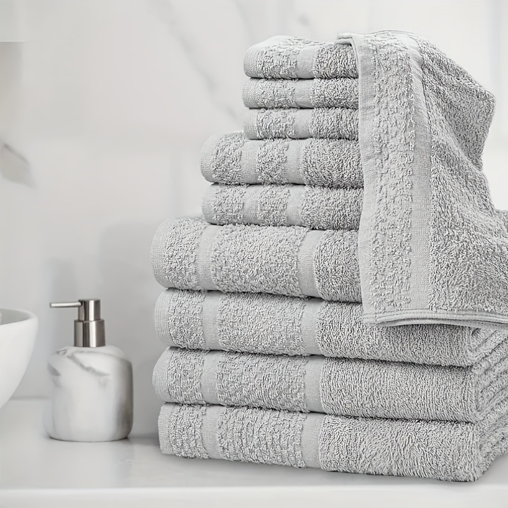Refresh your bathroom essentials with this 10‑Piece Absorbent Cotton Bath Towel Set, designed for everyday comfort and long‑lasting performance. Crafted from a durable polyester‑cotton blend, each towel offers a soft touch, reliable absorbency, and a lightweight feel that makes drying off quick and comfortable.