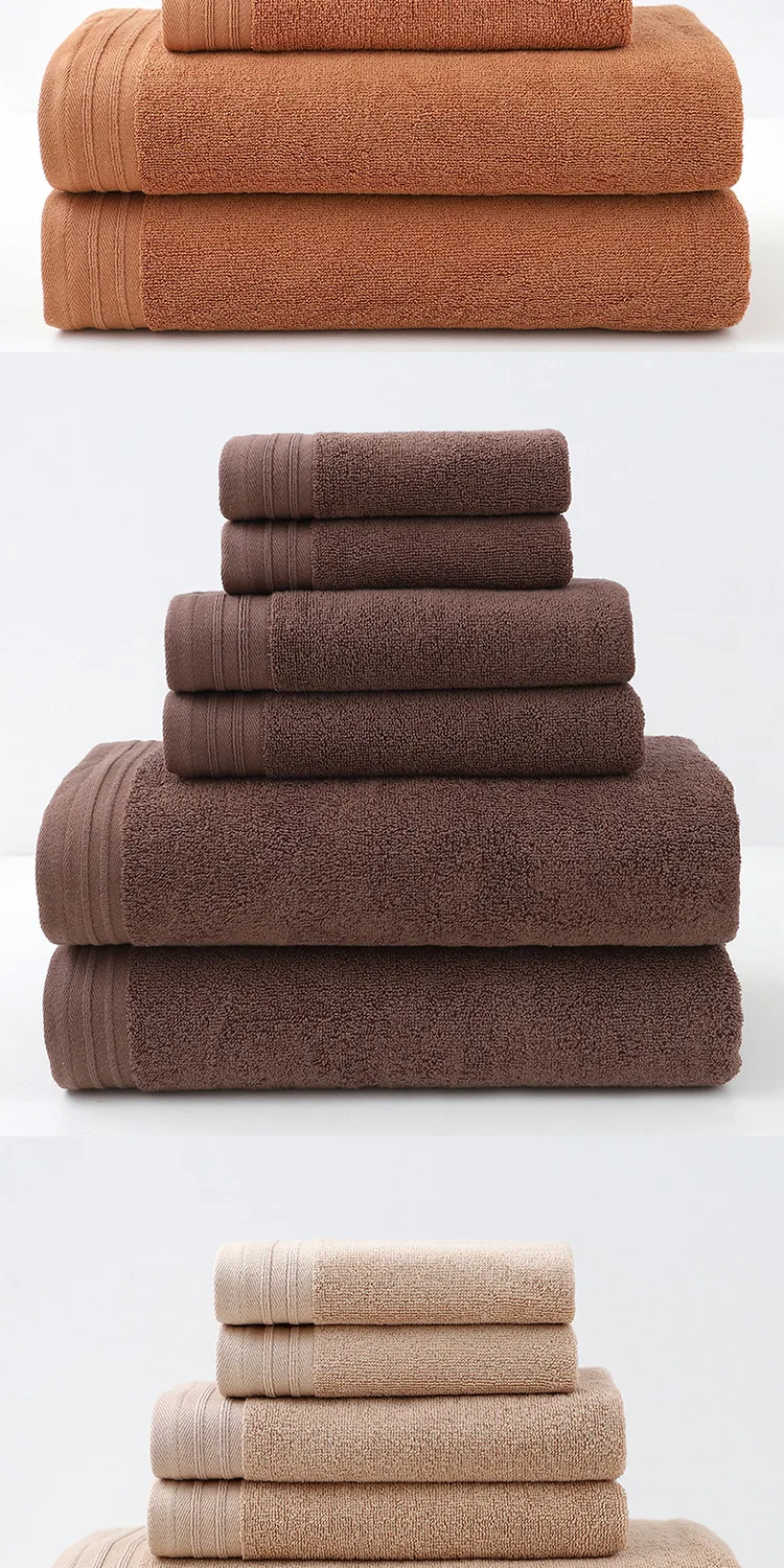 This 6‑piece cotton towel set gives you a soft, absorbent, and comfortable way to dry your face, hands, and body. Each towel uses 100% organic combed cotton, so it feels gentle on the skin and absorbs water quickly. Because the terry fabric dries fast, the towels stay fresh and ready for daily use.