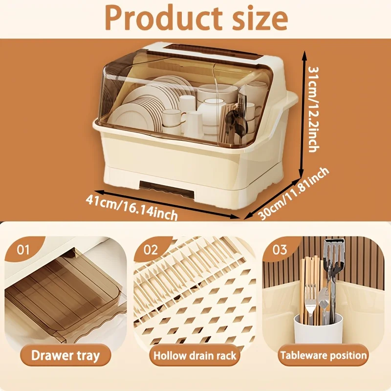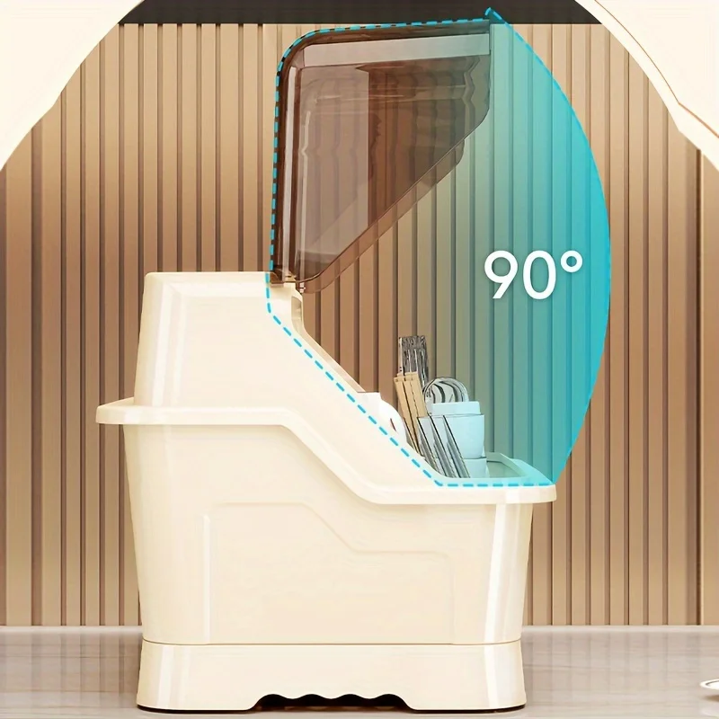 Keep your dishes clean and protected with this compact dish rack. The dust‑proof lid shields your tableware from dirt, grease, and insects. It works well on countertops and inside cabinets, and the cream color blends easily with most kitchen styles.