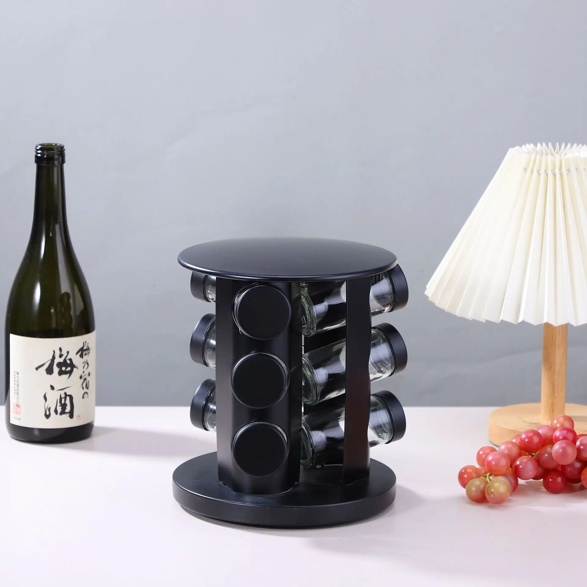 • 360° Rotating Swivel Stand Smooth rotation allows quick and easy access to all nine spice jars.