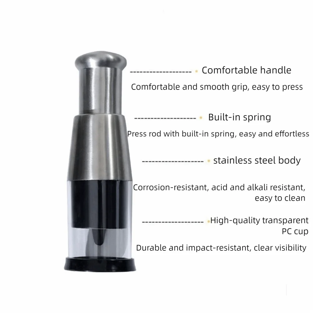 The chopper is made from durable stainless steel, and it therefore resists rust and daily wear. The ABS and PP components add strength while keeping the tool lightweight. Furthermore, the ergonomic shape fits comfortably in your hand, so you can press and chop with less effort. Because of its smooth surface, it is also easy to clean after use.