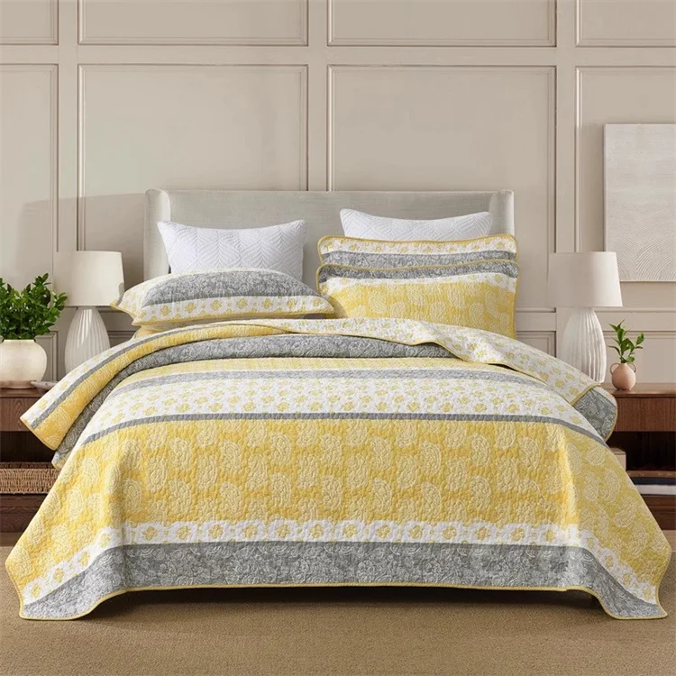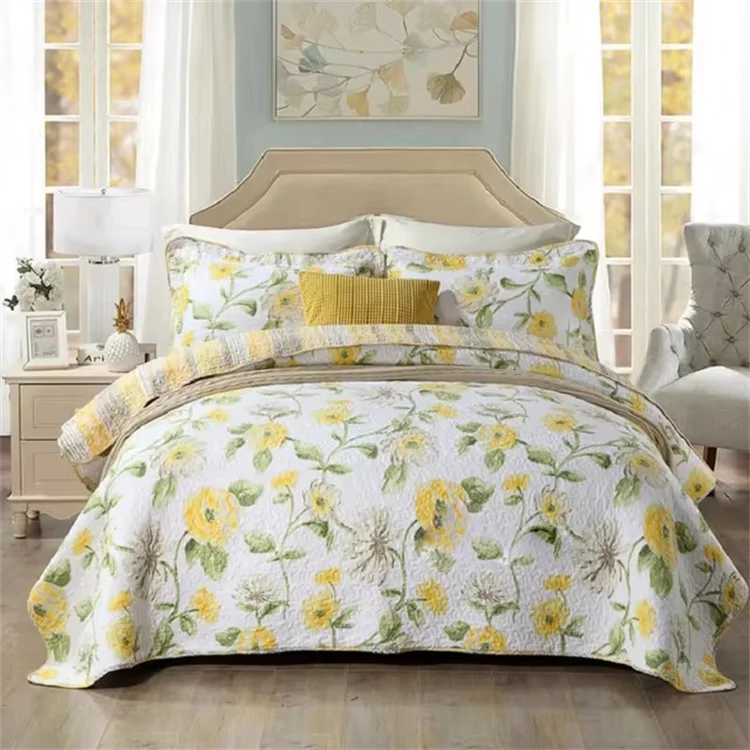 This 3‑piece set includes one quilt and two pillowcases, giving your bed a complete and coordinated look. The floral printed pattern adds a warm, inviting touch, while the quilted design provides texture and long‑lasting quality. Additionally, the reactive printing process helps maintain color brightness over time.
