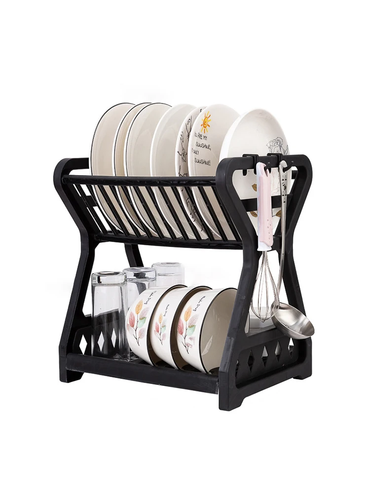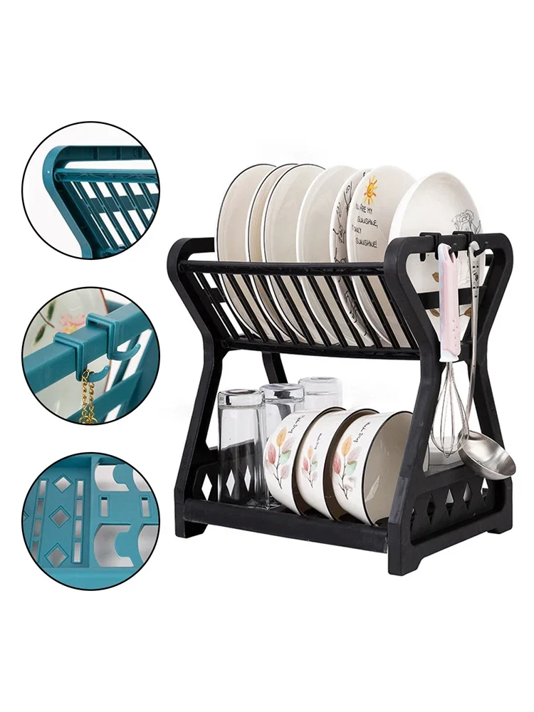 Storage Rack, Drain Rack, Bowl Rack, Kitchen Storage Rack, Double-Layer Dish Rack Storage Dish Drainer Dish Dryer Organizer Shel